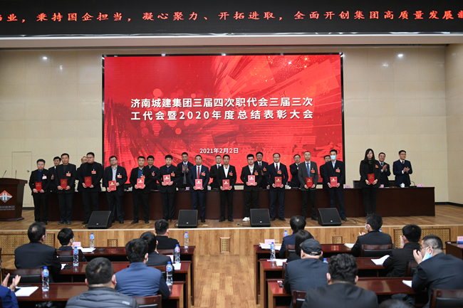 下午15時(shí),大會(huì)開(kāi)幕,全體起立,高唱國(guó)歌。牟曉巖總經(jīng)理代表領(lǐng)導(dǎo)班子向大會(huì)作集團(tuán)年度工作報(bào)告,全面總結(jié)回顧了2020年和“十三五”期間取得的發(fā)展成績(jī),明確了“十四五”發(fā)展規(guī)劃目標(biāo),安排部署了2021年重點(diǎn)工作。報(bào)告指出,2020年是極不平凡的一年,集團(tuán)黨委帶領(lǐng)全體干部職工攻堅(jiān)克難、砥礪奮進(jìn),統(tǒng)籌推進(jìn)疫情防控和生產(chǎn)經(jīng)營(yíng)工作,全年完成產(chǎn)值203億元,中標(biāo)工程總造價(jià)206億元,同步實(shí)現(xiàn)“十三五”發(fā)展規(guī)劃各項(xiàng)主要指標(biāo)。集團(tuán)綜合實(shí)力位居全國(guó)市政行業(yè)前三名、山東省建筑企業(yè)(不含央企)第三位、濟(jì)南市市屬建筑企業(yè)第一位。